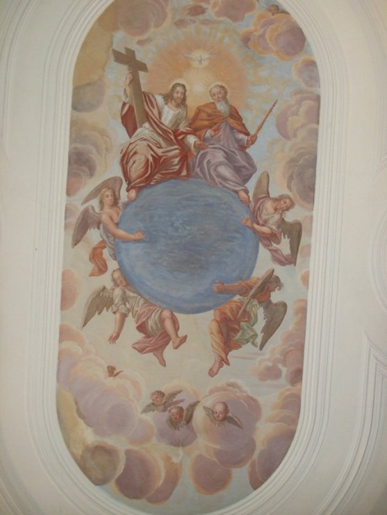 mit Akanthuswerk und Deckengemälden (1893 restauriert) auf.